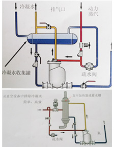 通常冷凝水可以通過疏水閥很方便地排出設備,進入冷凝水排放系統,如果冷凝水已經被污染,則應該直接排放掉;如果沒有污染,可以將其回收到鍋爐給水箱以利用冷凝水含有的熱量,這樣同時也節省了水和水處理的費用。有時用汽設備內部會產生真空,這樣會影響冷凝水的排出,從而影響蒸汽換熱效率,這時冷凝水就需要用泵壓出去。